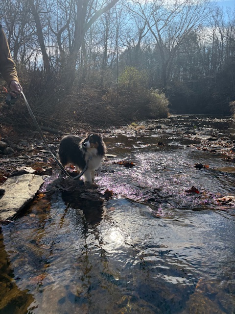 This weekend’s adventure took us to the Union Mill & Bull Run–Occoquan Trail, and it was such a gorgeous fall hike. Most of the trail winds right along the water, giving us peaceful views, rushing sounds, and plenty of cool spots for Bear to splash around. He especially loved hopping in and out of the streams — and the stepping stones along the water were a fun surprise you definitely don’t want to miss!