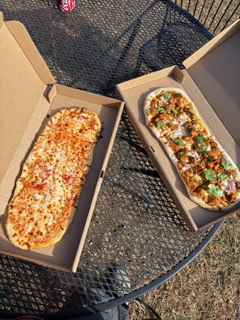 We shared a bottle of the Mélange 2022, a light, easy-drinking red that paired beautifully with the fall weather. Their pizza truck had two great options that day: the Back to Basics and the unexpectedly amazing Bombay Tandoor. I never imagined Indian flavors on pizza, but it was the star of the show — warm spices, a little heat, and the perfect cozy twist.